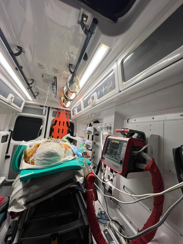 Стан постраждалого був критичним. Це вимагало безперервної інтенсивної терапії та моніторингу життєвих показників протягом усього шляху.
