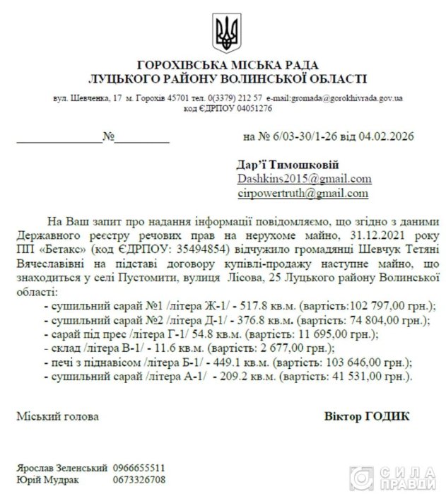 Ймовірно, біля будинку Володимир Марценюк тоді придбав і землю, але три земельні ділянки, за цією ж адресою із 2018 року належать його матері Любові Марценюк. Вони дісталися жінці за договором дарування.