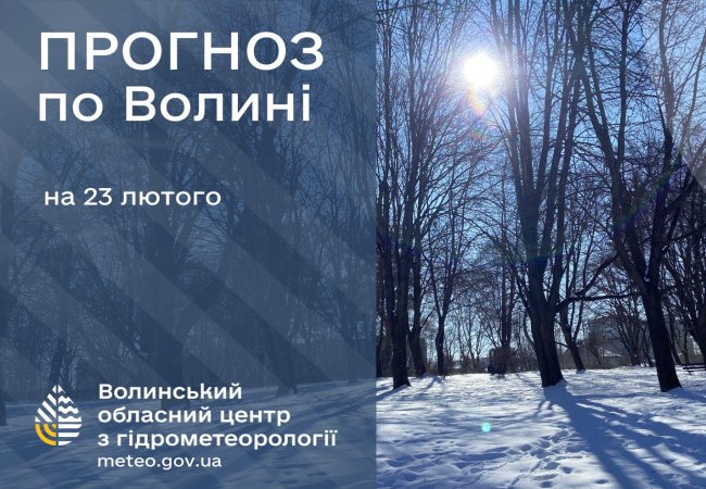 Волинський обласний центр з гідрометеорології опублікував прогноз погоди на 23 лютого.