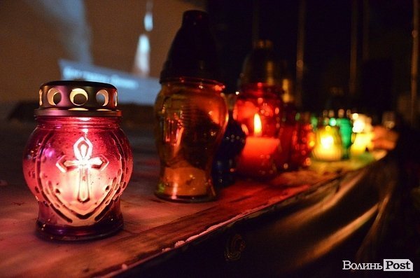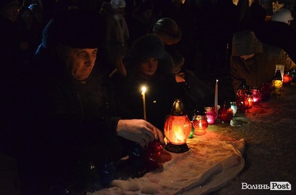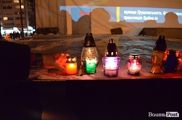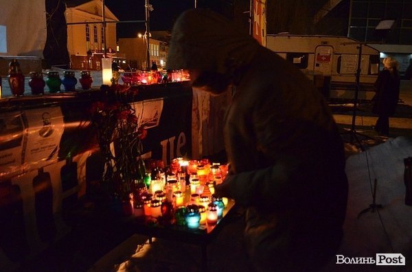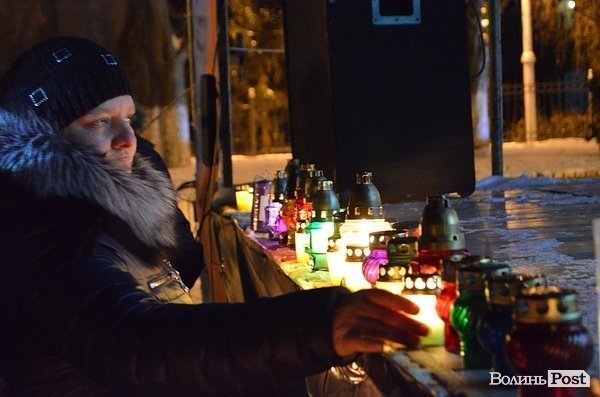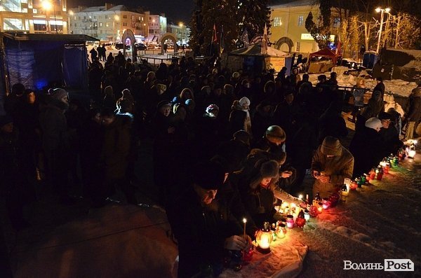 У центрі Луцька люди зібралися з лампадками, щоб помолитися за загиблих на барикадах у Києві.