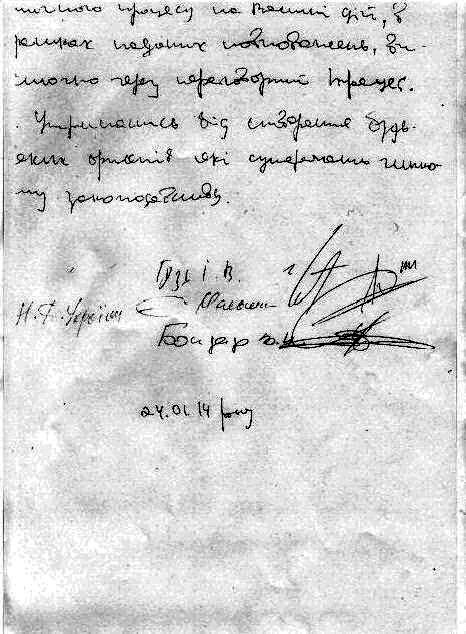 Підписали: Ігор Гузь, Євген Мельник, Володимир Бондар. 24.01.2014 р».