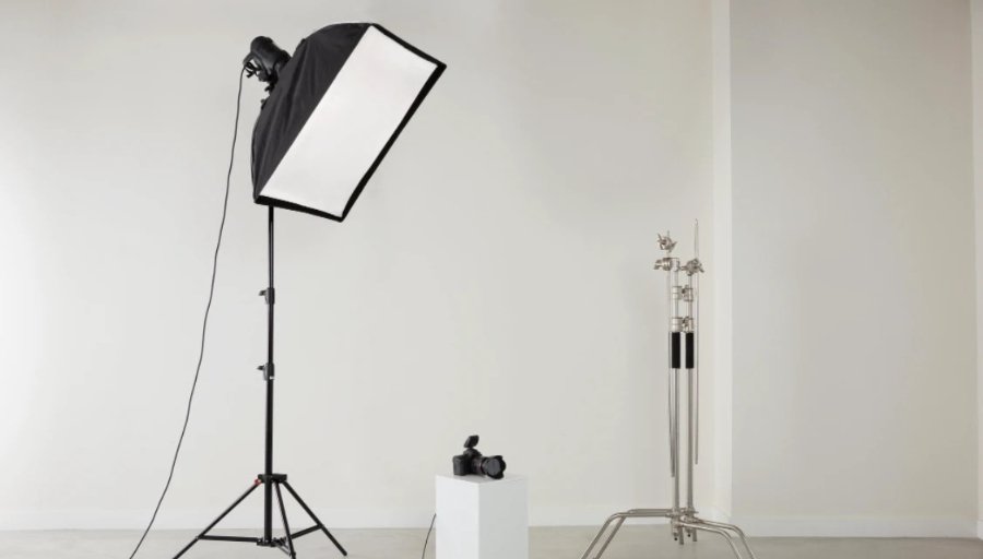 Предметна зйомка: один софтбокс зверху або збоку для рівномірного підсвічування; нюансні відблиски роблять маленькі рефлектори або додаткові софтбокси.