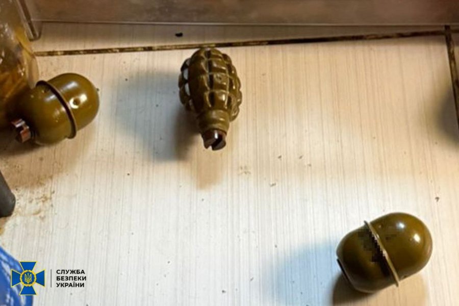 Під час обшуків у затриманого вилучено саморобну бомбу і складові для її виготовлення, мобільний телефон із доказами співпраці з рф та бойові гранати.