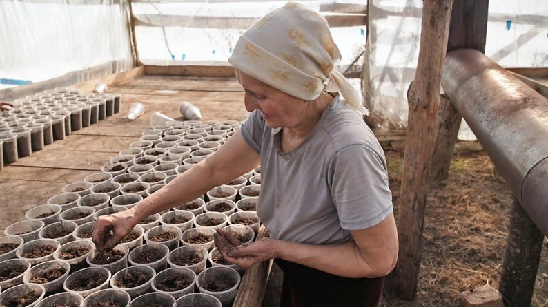 "Висадили, підв’язуємо, там такі шнурки є, дроти. Підв’язувати, пагони відривати треба. Вуси пускають же огірочки. Вуси відривати, щоб усе йшло у огірочки. Ми мусимо їх усі висіяти за день і в розсаднику вони будуть до місяця. Щоб повністю коренева система поплелася по стаканчику, і от тоді уже добре висаджувати", — сказала жінка.