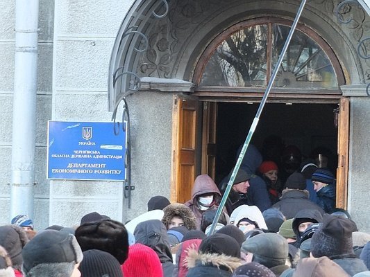 Раніше вони прорвалися до одного приміщення облдержадміністрації, виламавши двері одного з входів до будівлі департаменту економічного розвитку, - пише інформ-агенція «Чернігівський монітор».