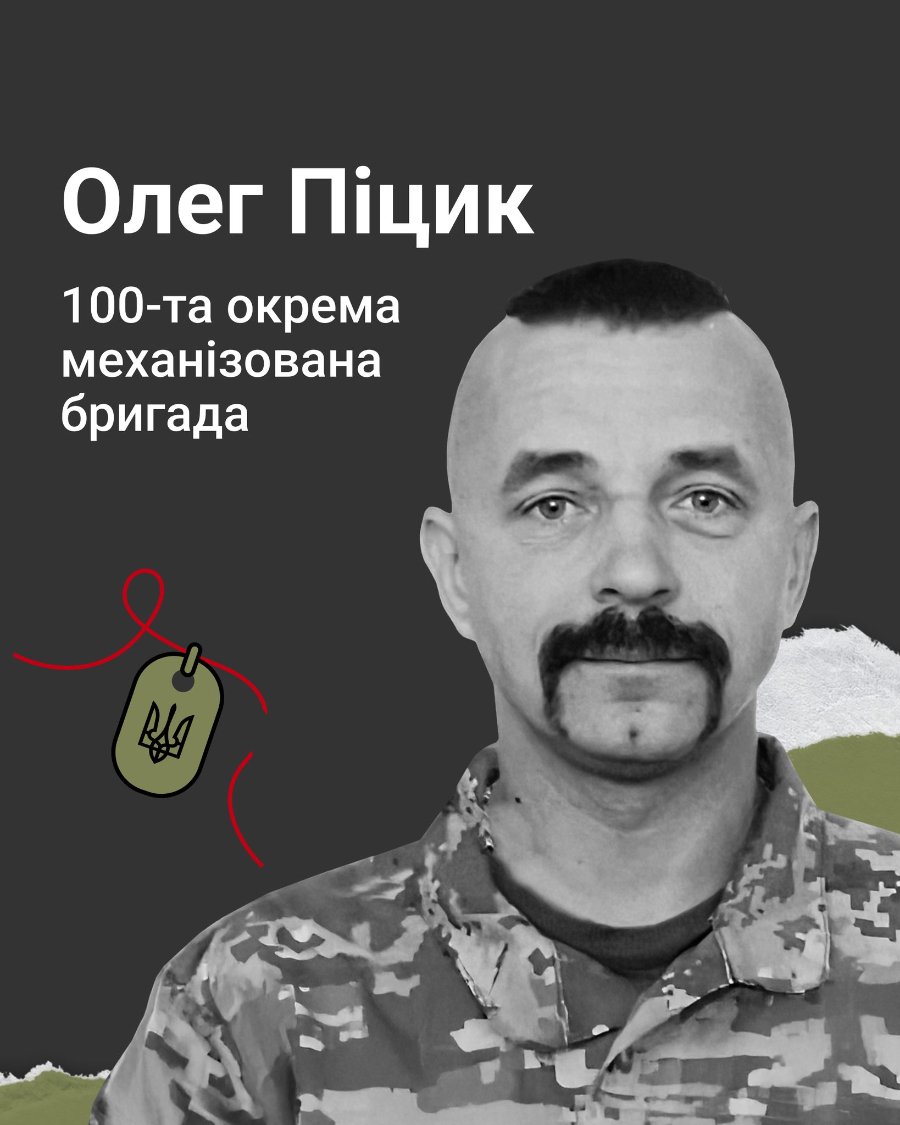 44-річний волинянин Олег Піцик на псевдо Фартовий поліг 23 грудня 2024 року в селищі Щербинівка Донецької області внаслідок прямого влучання ворожого танкового снаряду.