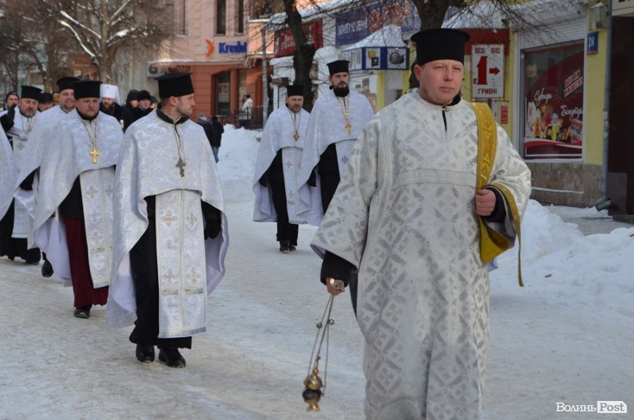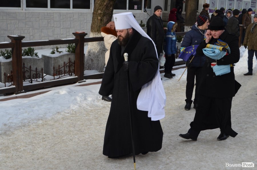 З Театрального майдану учасники зібрання рушили колоною, яку очолив митрополит Луцький і Волинський Михаїл, до Замкової площі.