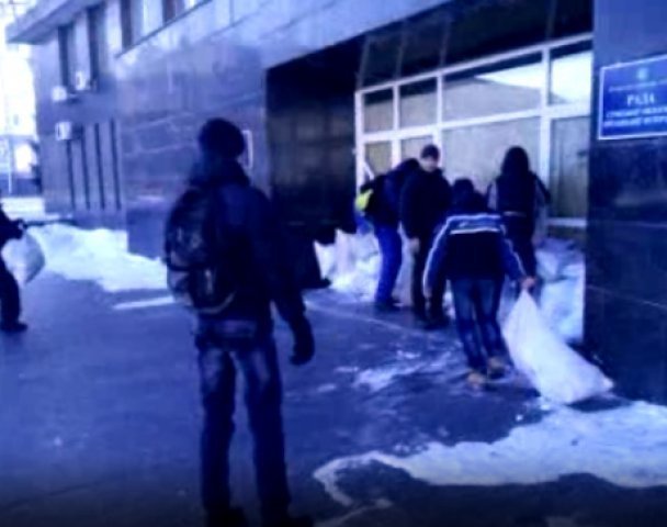 Активісти зносять мішки зі снігом під усі входи до адміністрації та мерії, щоб не допустити проходу туди депутатів у понеділок, 27 січня, - пише ТСН.