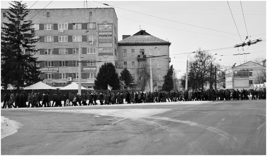Зауважимо, що рухалися євромайданівці двома колонами.