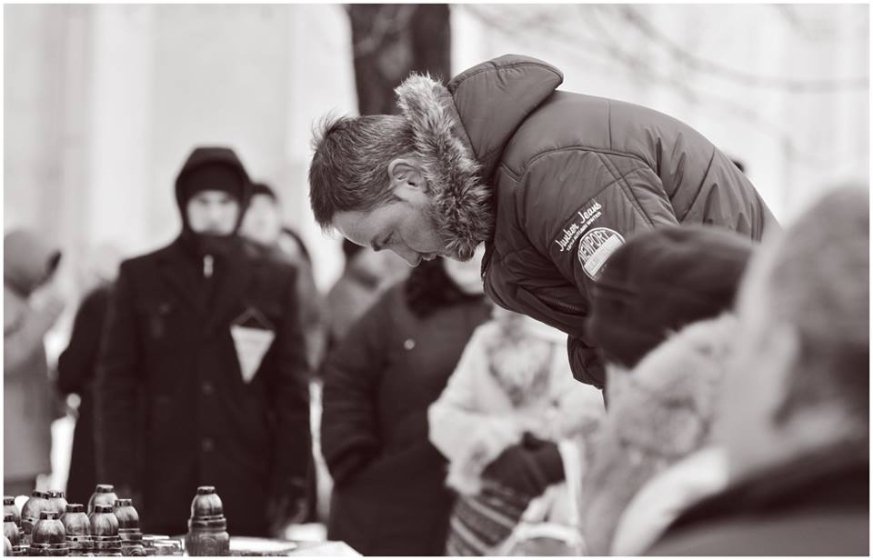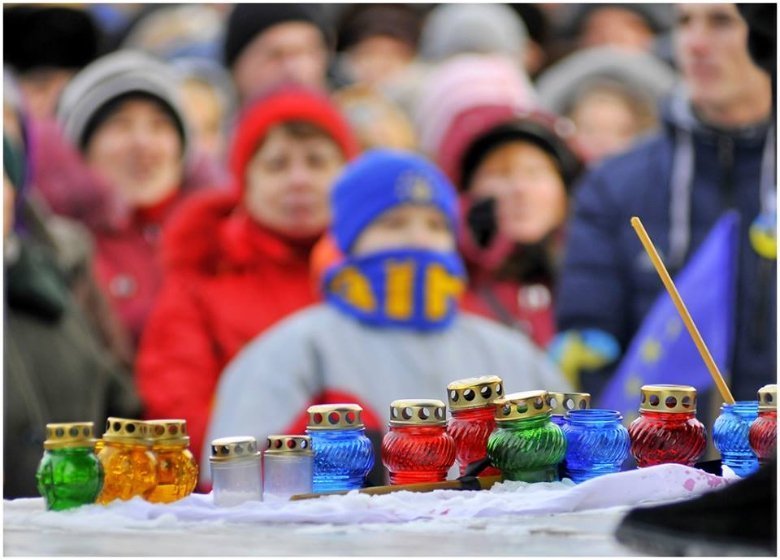 На Замковій площі відбулася панахида, після якої портрети вбитих активістів прикріпили до пам'ятника жертвам політичних репресій.