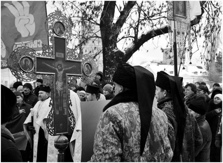 Учасники заходу також пройшлися ходою до Замкової площі, де священнослужителі УПЦ КП відправили панахиду за громадськими активістами, яких убили в Києві.