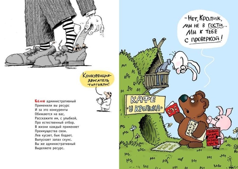 Він разом з художником сатирично обіграли образи корупціонерів та нечесного правосуддя у авторському жанрі «Вредных советов», - пише Gazeta.ua.