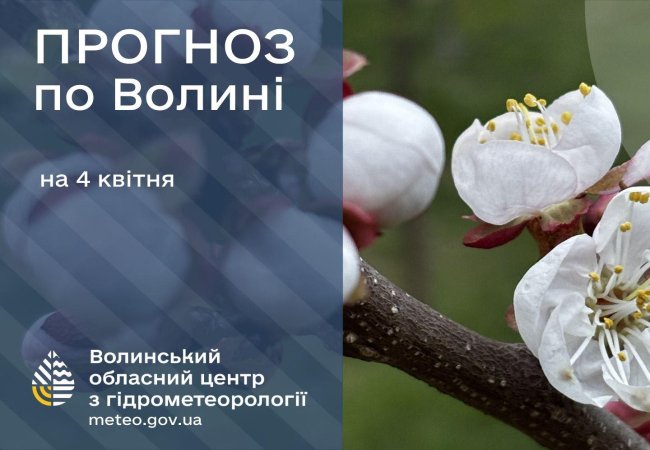 Волинський обласний центр з гідрометеорології опублікував прогноз погоди на 4 квітня.