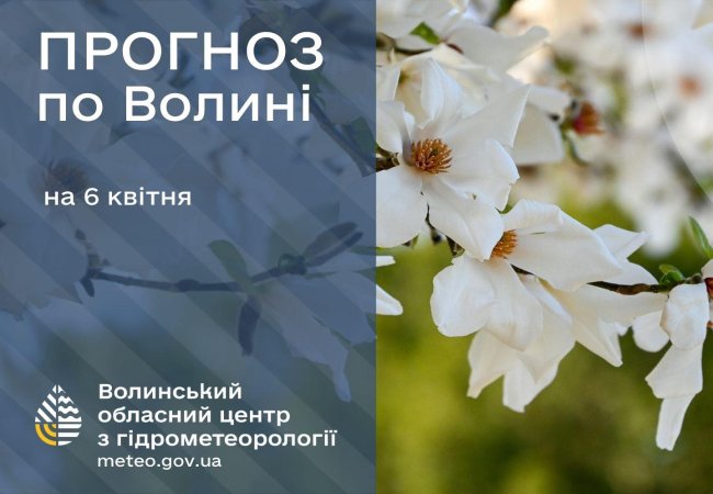 Волинський обласний центр з гідрометеорології опублікував прогноз погоди на 6 квітня.