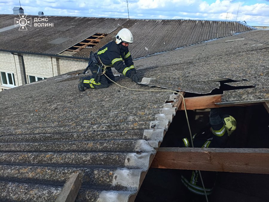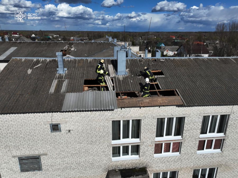 У селі Підцирʼя Камінь-Каширського району рятувальники демонтували аварійні елементи покрівлі місцевого закладу, що могли впасти від поривів вітру.