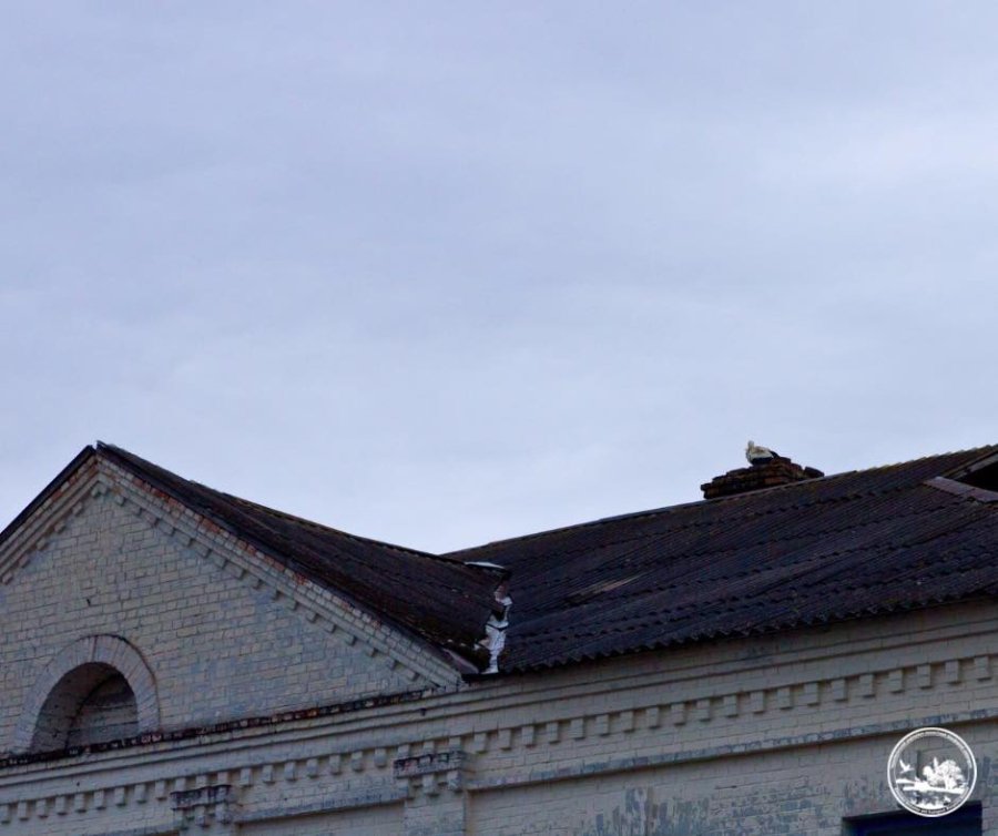 Лелек помітили в центрі міста, на даху адміністративної будівлі біля меморіалу «Зірка Полин».