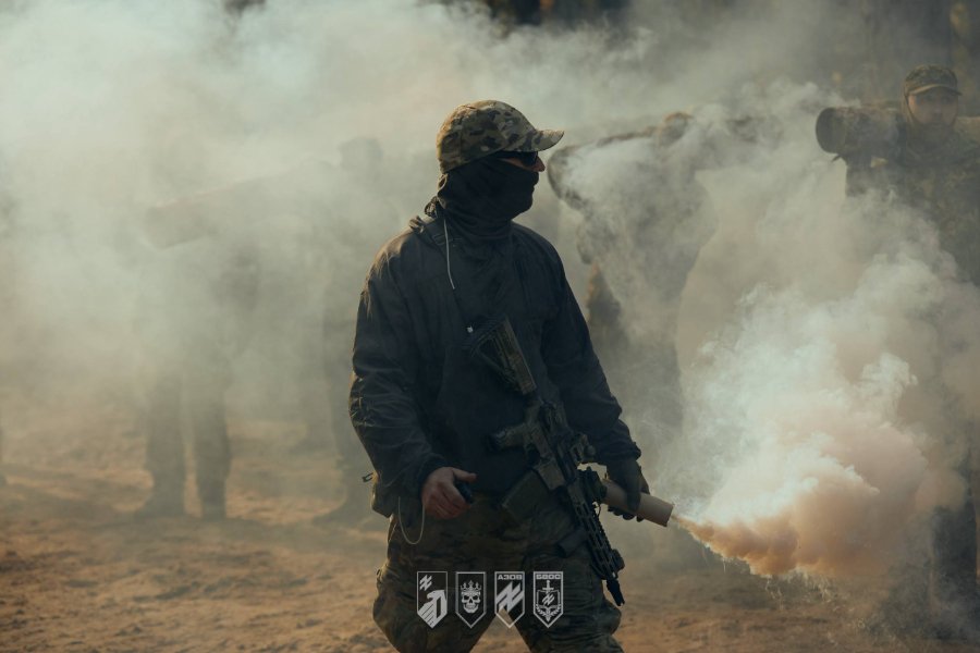 Це початок шляху для рекрутів, які обрали «Любарт» і «Азов». Вони вже стали до навчання під керівництвом досвідчених інструкторів — бійців «Любарта» й «Азову» з реальним бойовим досвідом та за підтримки Батальйону вишколу особового складу 1-го корпусу НГУ «Азов».