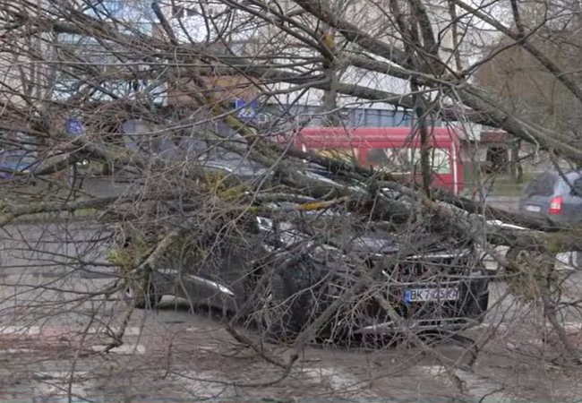 Унаслідок падіння дерева транспортний засіб зазнав значних пошкоджень: зім’ятий дах і капот, тріснуте лобове скло. За словами чоловіка, коріння дерева було повністю гнилим, що могло стати причиною його падіння.