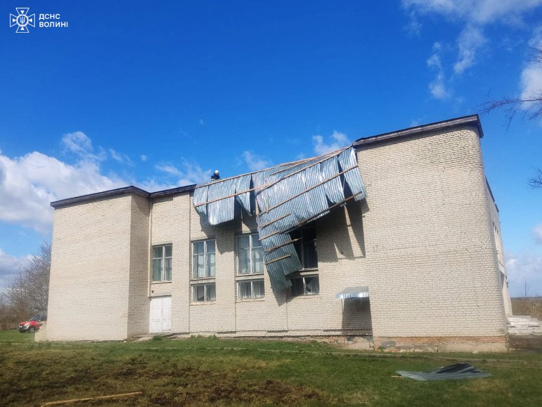 На Волині рятувальники ліквідували наслідки негоди: зірвало дах у будинку культури, школі та бібліотеці