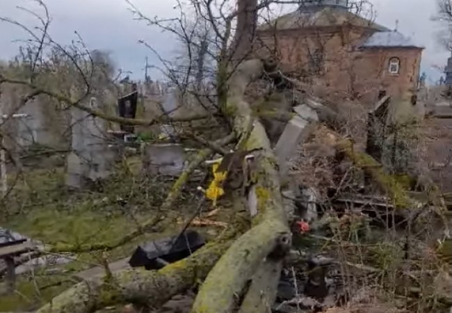 Біля могил розбите гілля, величезне дерево наробило чимало збитків.
