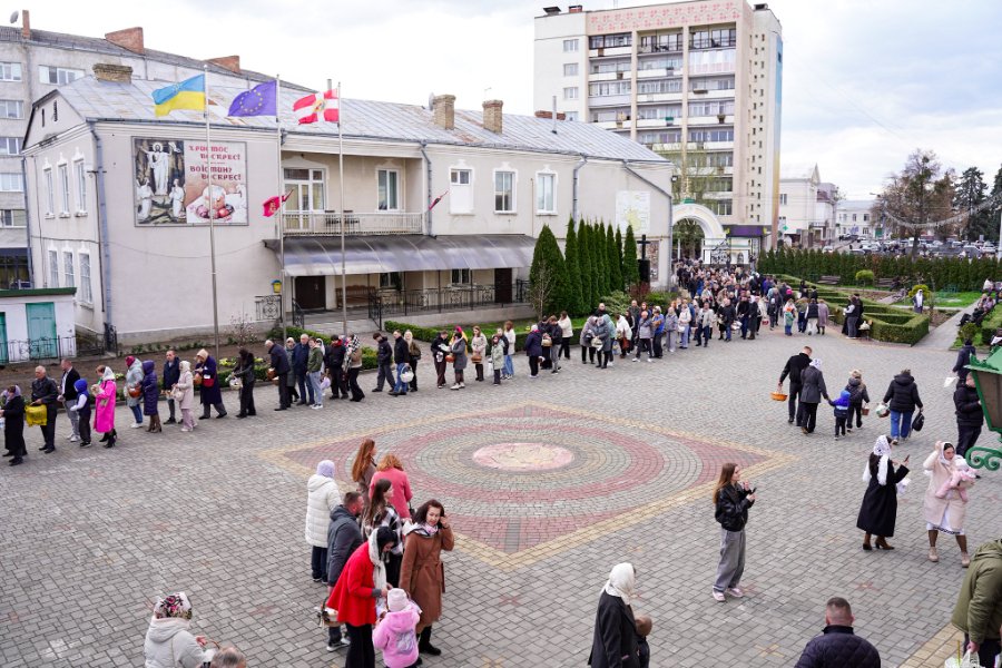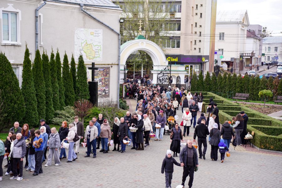 У Луцьку в переддень Великодня сотні вірян приходять до храмів, щоб освятити святкові кошики. Найбільше людей традиційно збирається біля Свято-Троїцького кафедрального собору, де освячення триває протягом усього дня.