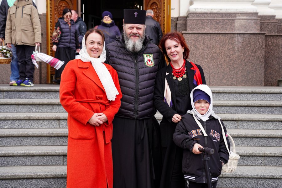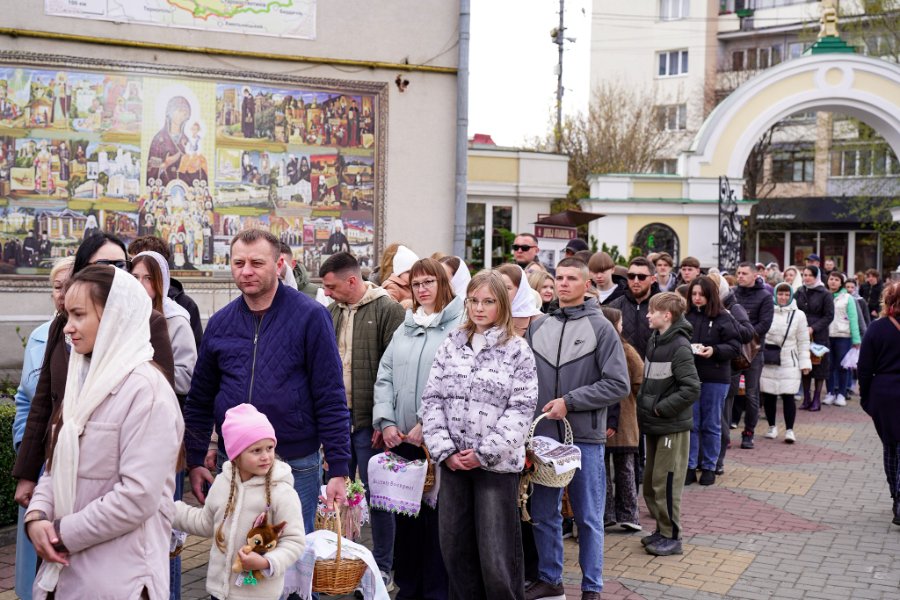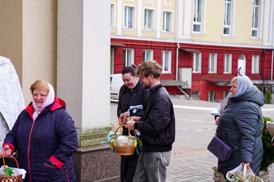 Біля храму можна було побачити найрізноманітніші великодні кошики. Одні — невеликі й скромні, інші — щедро наповнені та прикрашені вишитими рушниками, стрічками й квітами. У кошиках — паски, писанки, ковбаса, сир, масло, хрін та інші традиційні страви.