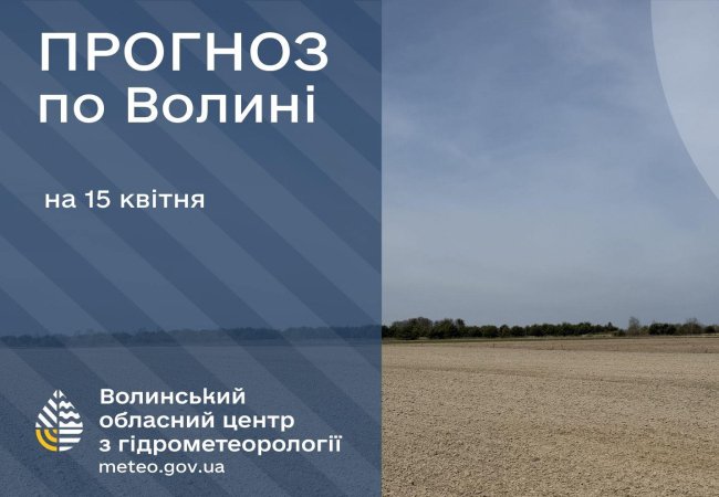 Волинський обласний центр з гідрометеорології опублікував прогноз погоди на 15 квітня.