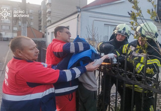 Рятувальники прибули за лічені хвилини. За допомогою електропилки вони обережно перерізали прут та передали дитину медикам.