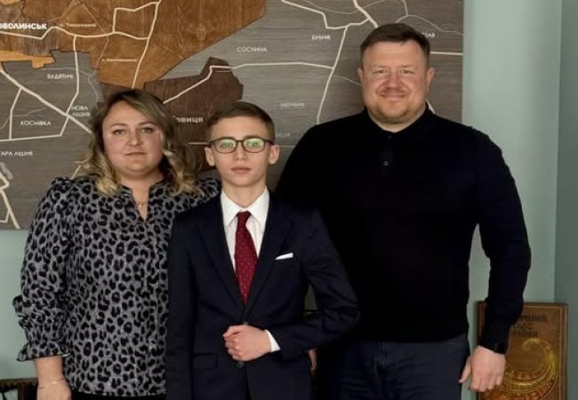 "Це Арсеній Бахмач, семикласник нашого ліцею №8. Цього року він переміг на всеукраїнському етапі олімпіади з історії за восьмий клас! І став першим серед перших в Україні", - йдеться у дописі на сторінці міського голови.