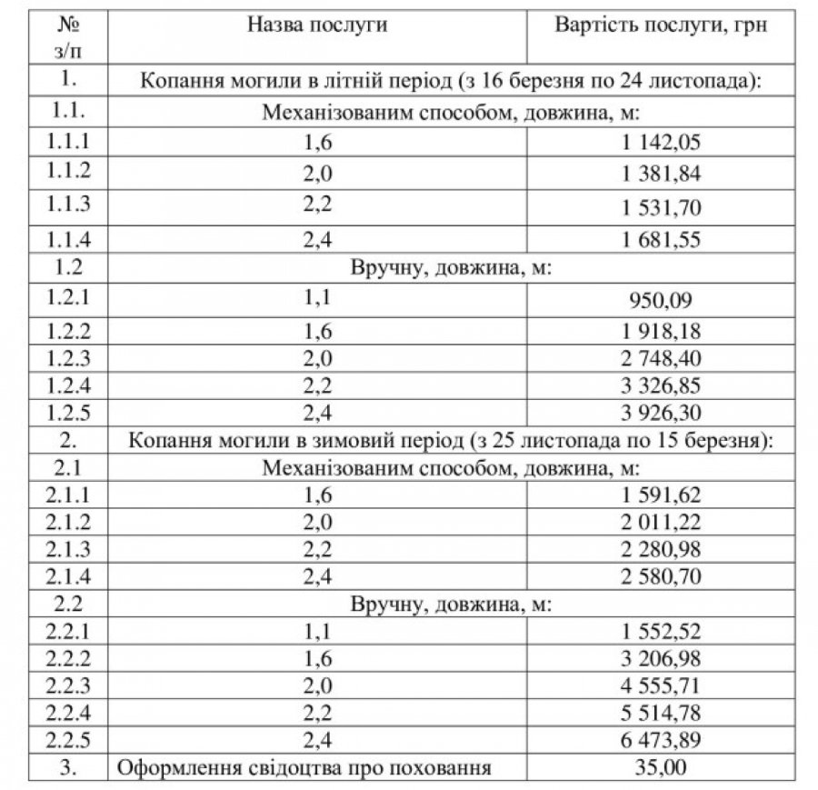«Перегляд вартості окремих видів ритуальних послуг відбувається з метою приведення їх до економічно обґрунтованого рівня по причині зростання витрат на оплату праці, цін на пально-мастильні матеріали тощо», – йдеться в повідомленні.
