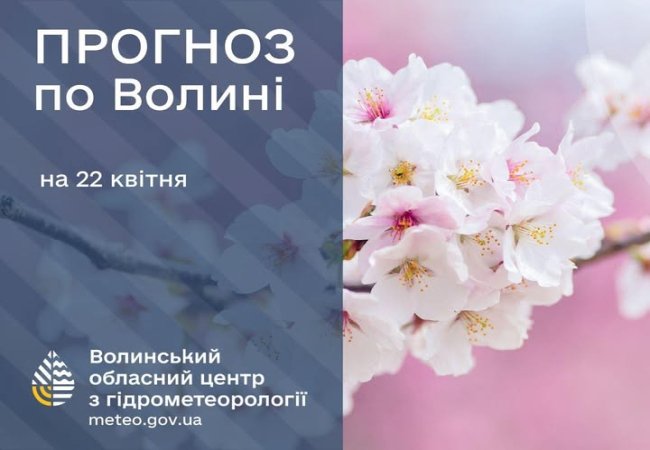 Волинський обласний центр з гідрометеорології опублікував прогноз погоди на 22 квітня.