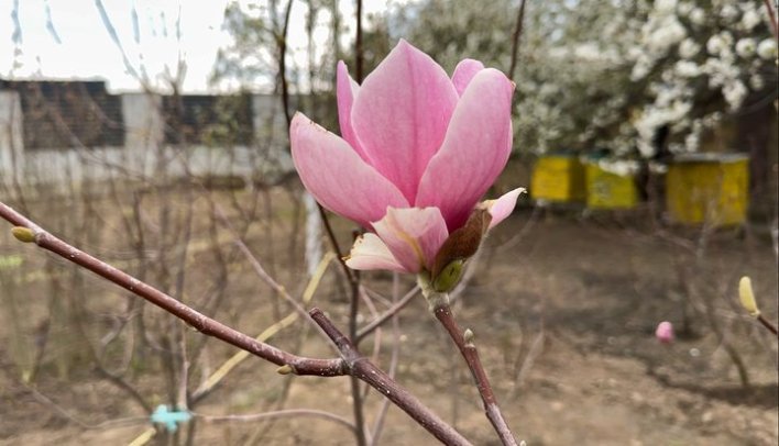 Магнолія зимує добре, говорить Григорій Козюра. За 19 років його дерева жодного разу не підмерзали, адже квіти зазвичай розпускаються після великого морозу. Цьогоріч, каже, деякі квітки пожовтіли через сильні морози взимку.