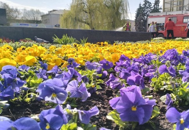 "Віола у нас висаджуються ранньою весною. Вона є морозостійкою, витривала до переміни різних температур, але вона красивоквітуча, — говорить посадовець. — Вартість однієї квітки 28 гривень".
