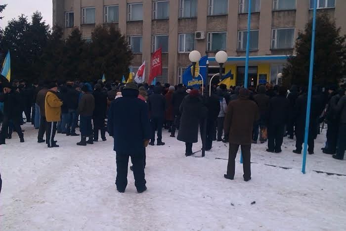 На мітинг біля будівлі райдержадміністрації зібралося близько 200 мітингувальників. Їм на підмогу приїхало близько 30 автомобілів Автомайдану.