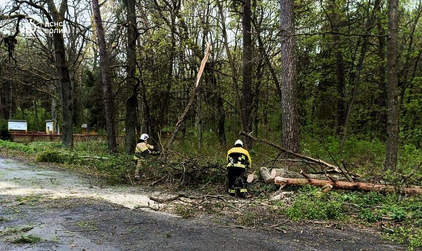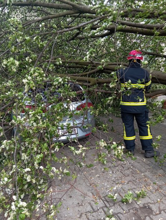 Зокрема, рятувальники працювали над розкряжуванням повалених дерев у Луцькому та Ковельському районах. Одне з дерев упало на автомобіль у Луцьку.