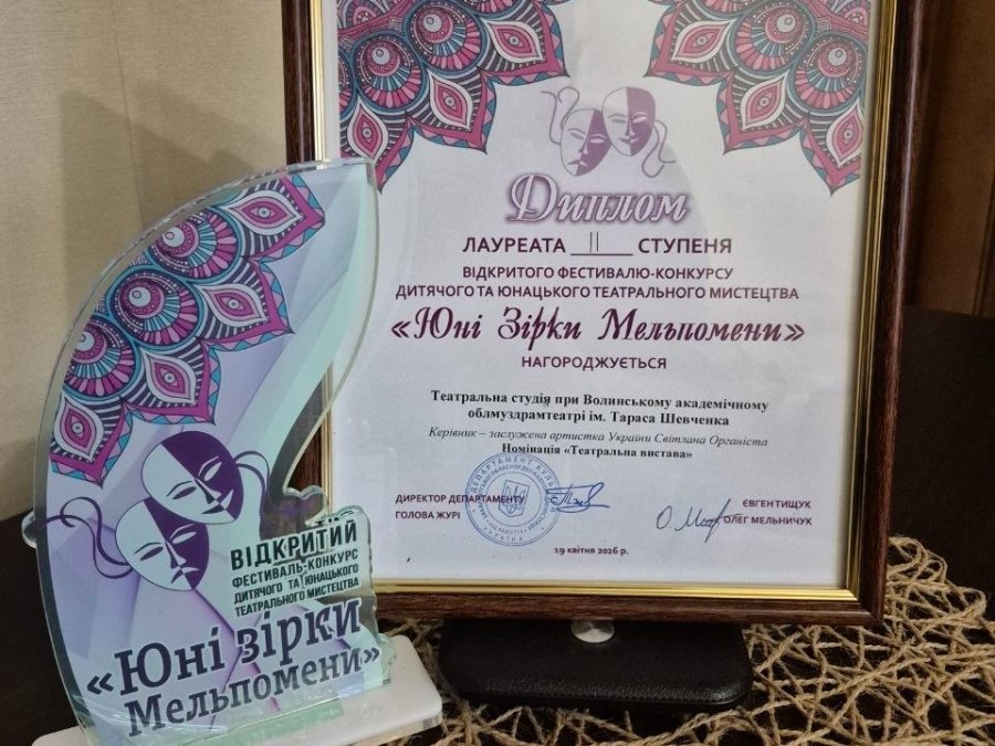 Вихованці Театральної студії при Волинському академічному українському обласному музично-драматичному театрі імені Тараса Шевченка здобули ІІ місце на Всеукраїнському відкритому фестивалі-конкурсі дитячого та юнацького театрального мистецтва «Юні зірки Мельпомени» (Закарпаття).