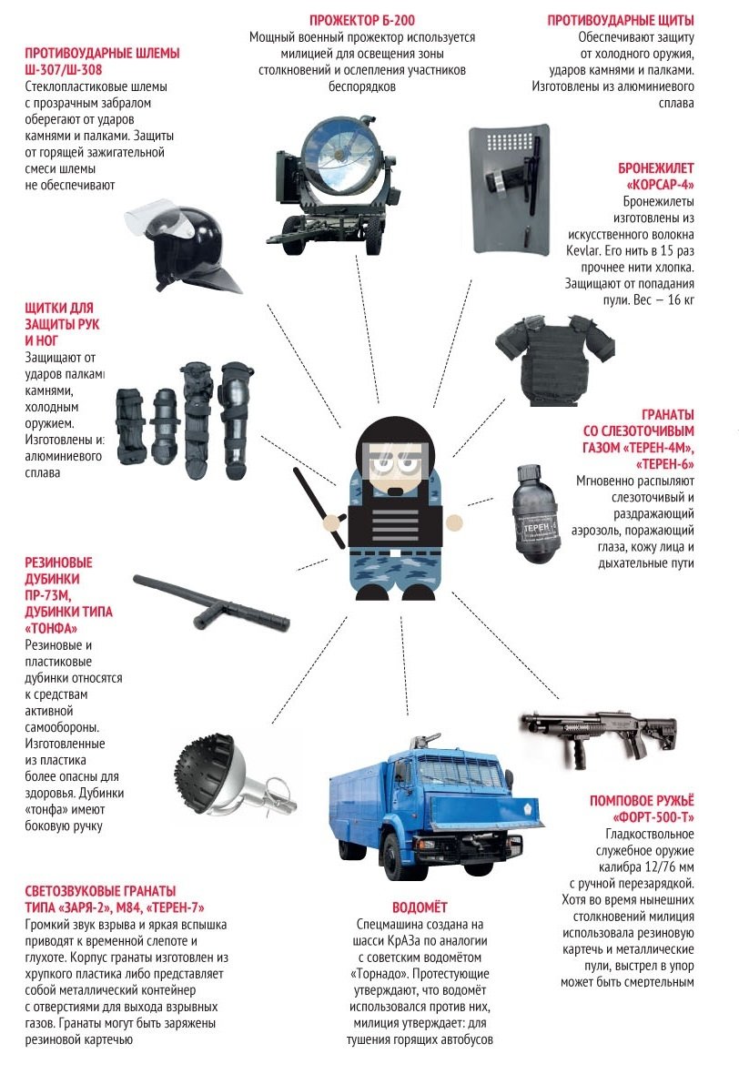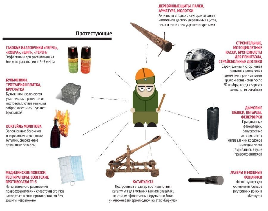 В інтернеті опублікувала інфографіку, на якій зображено, чим воюють у Києві силовики та демонстранти.