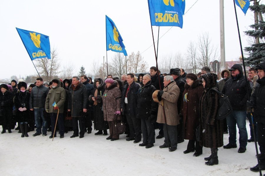 А ввечері громадська організація "Національний Альянс" запалила на Театральному майдані великого тризуба.