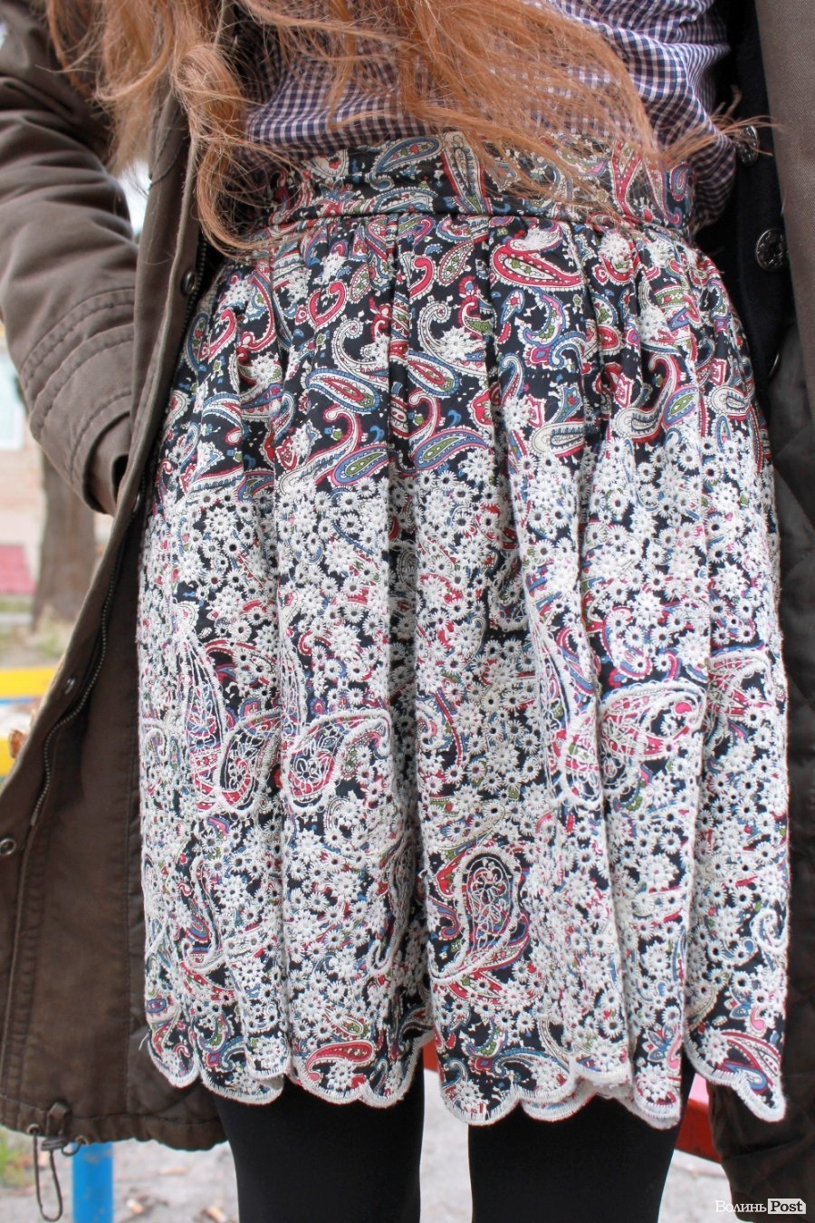 Спідниця модна, і одягнута по-модному, тільки з літньої тканини. Метелик симпатичний, однак до сорочки в клітинку підбирають однотонні метелики. В цьому ж образі метелик гарно дивиться, бо маленький.