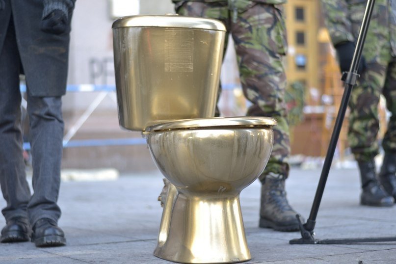 У Києві з’явився пам’ятник золотому унітазові, як символу корупції в Україні.