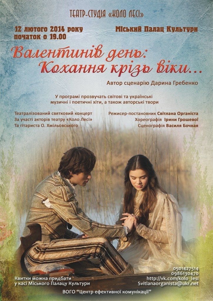 Театр-студія "Коло Лесі" покаже лучанам театралізований концерт "Валентинів день: Кохання крізь віки".