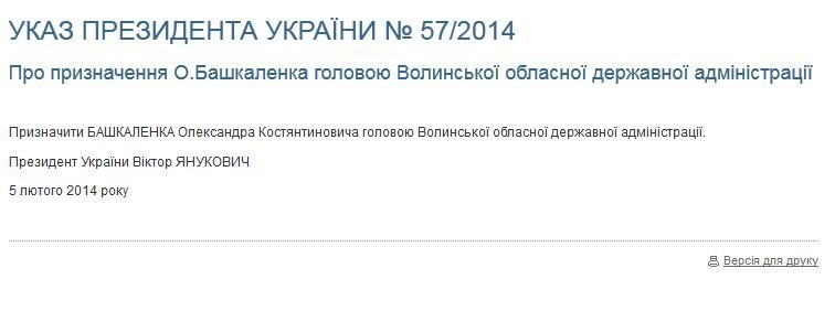 Так, новим очільником ОДА став перший заступник вже екс-губернатора Олександр Башкаленко. Як відомо, Башкаленко ‒ очільник осередку Партії регіонів на Волині.