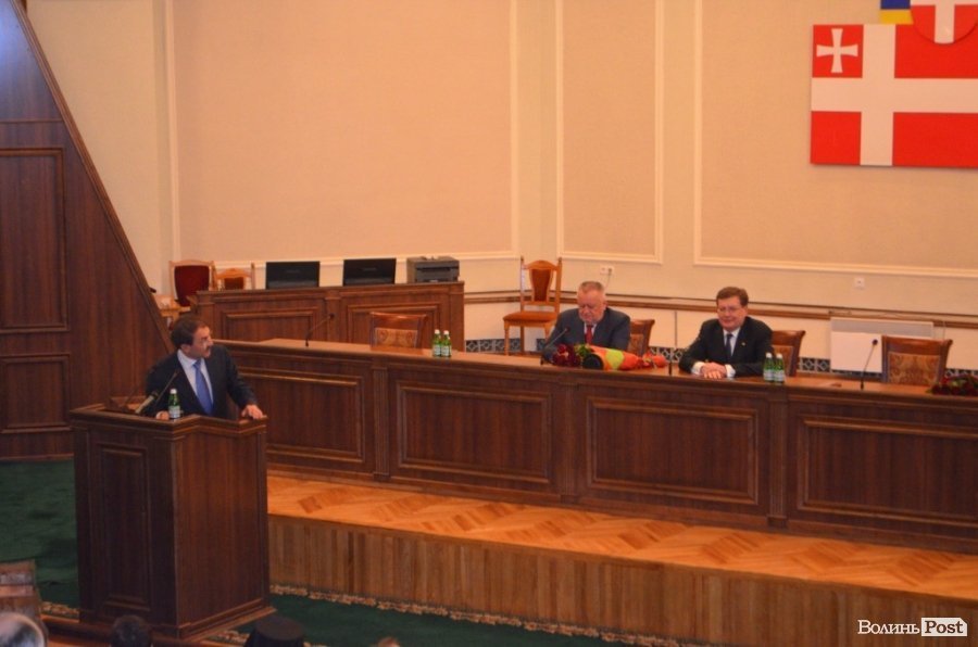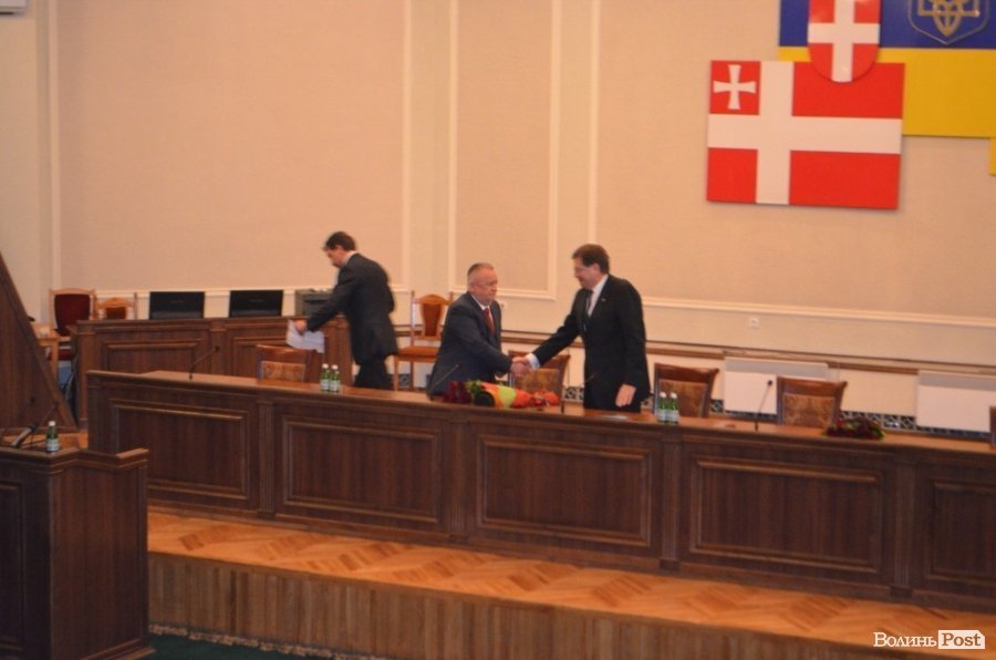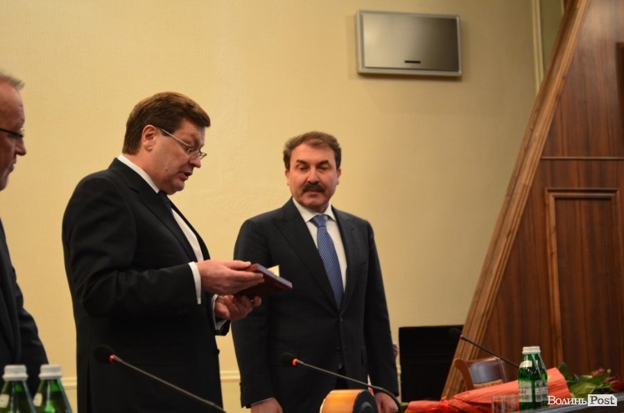 На початку заходу він зачитав указ президента Віктора Януковича про призначення Олександра Башкаленка головою Волинської ОДА, вручив йому відповідне посвідчення, орден "За заслуги", яким Башкаленка нещодавно відзначив Віктор Янукович, і букет квітів.