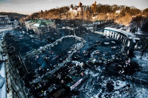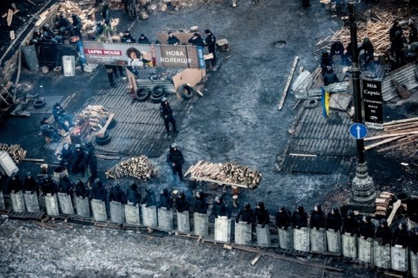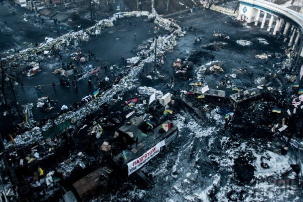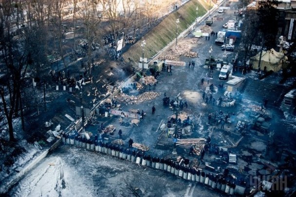 Фотограф зробив унікальні знімки барикад на Грушевського з висоти пташиного польоту.