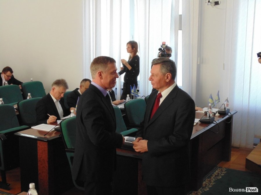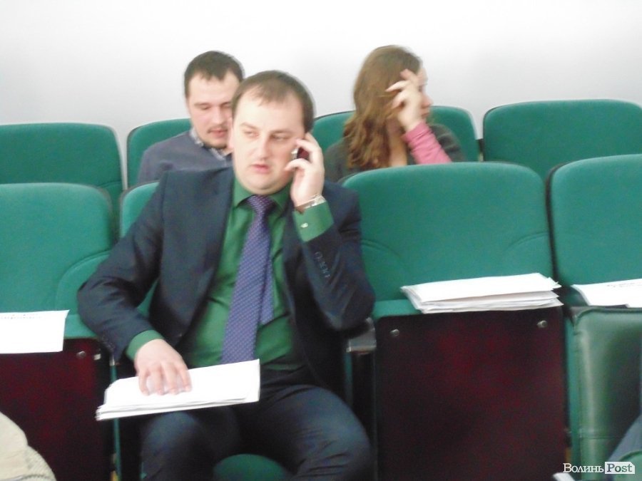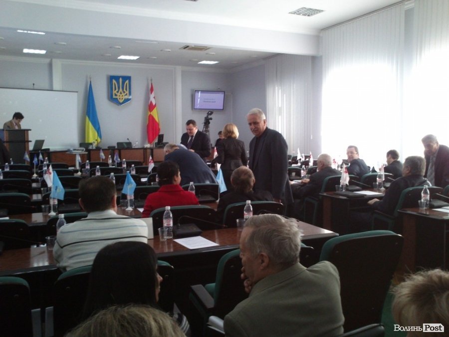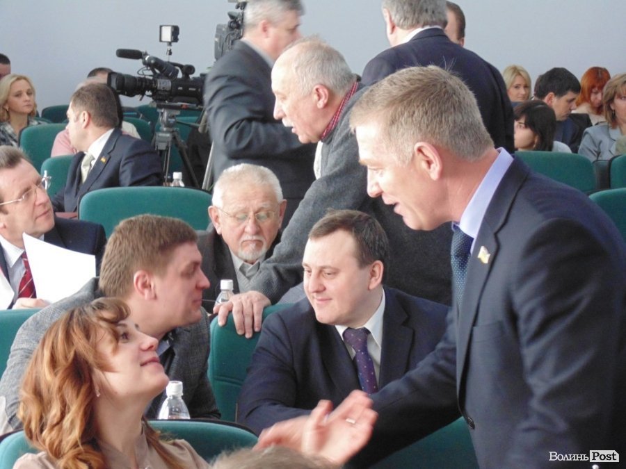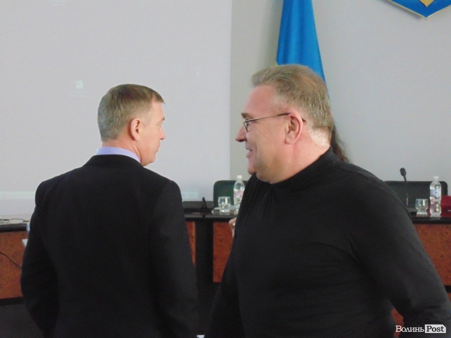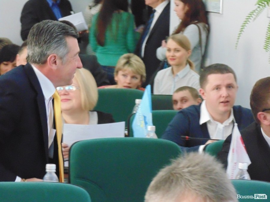 10:12 луцький міський голова Микола Романюк - уже в залі. Спілкується з головою «бюджетної» комісії Олегом Чернецьким.