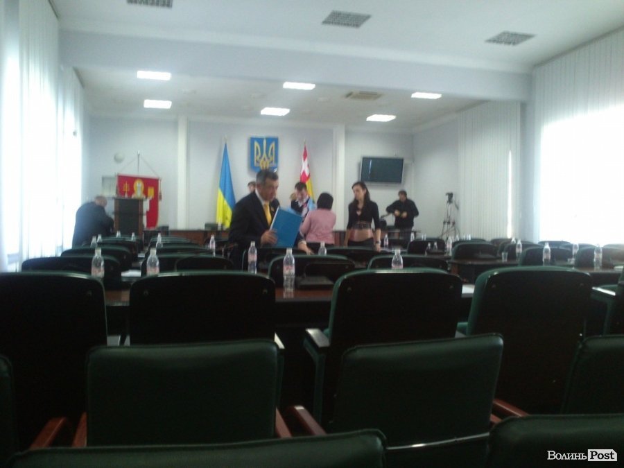 9:30 у сесійній залі Луцької міськради майже порожньо. Сесія розпочнеться о 10:00.