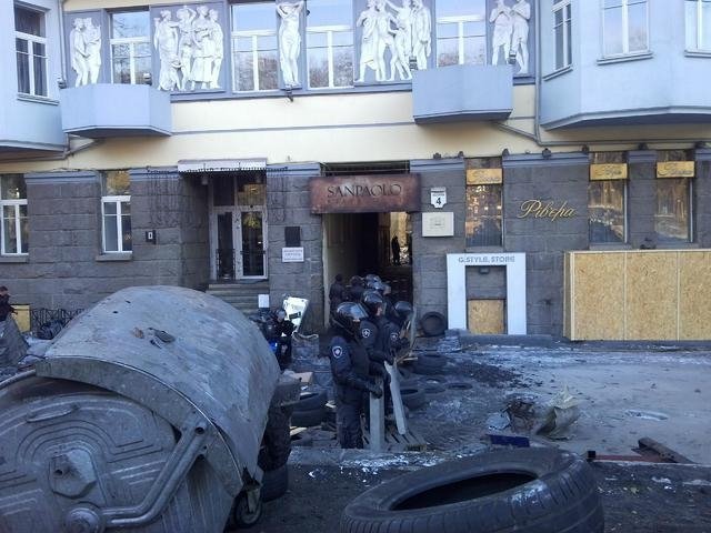 Ресторан «San Paolo» , вивіска якого неабияк прокопчена димом від шин, мабуть, остаточно втратив клієнтів. Те ж саме стосується найдорожчого бутіка Києва, що належить кумі Віктора Ющенка, вікна якого також завбачливо забили фанерою.