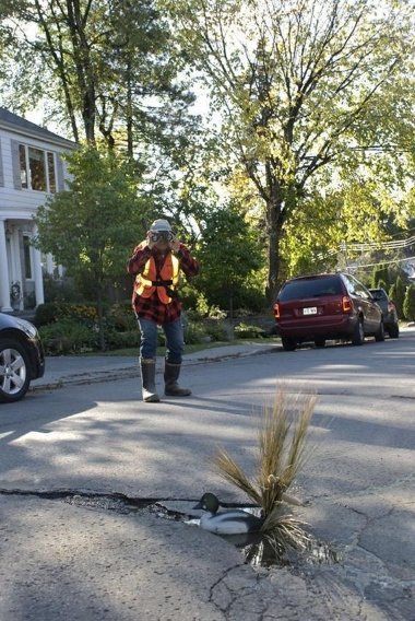 Вийшли оригінальні, дотепні та сюрреалістичні сценки,які пропонують по-новому поглянути на потворні дорожні ями.