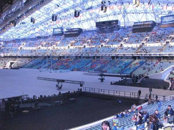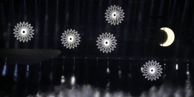 Перед початком церемонії ведучий Іван Ургант активно закликав вщент забитий стадіон "Фішт" бути галасливішими.