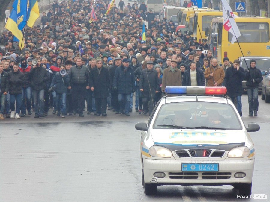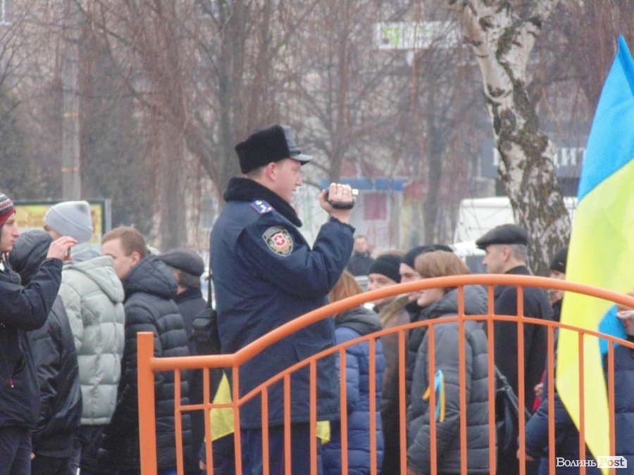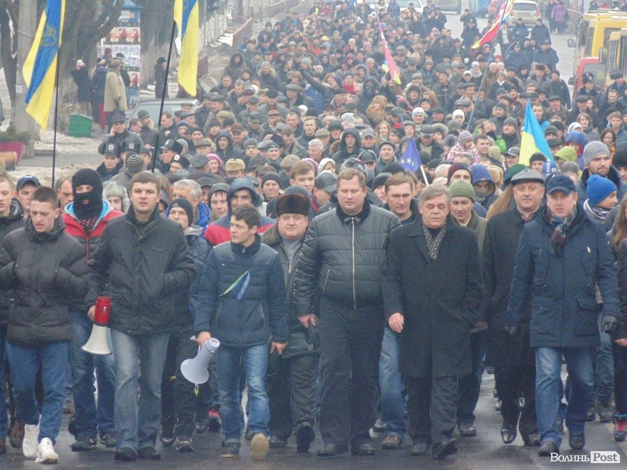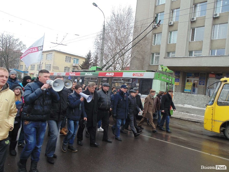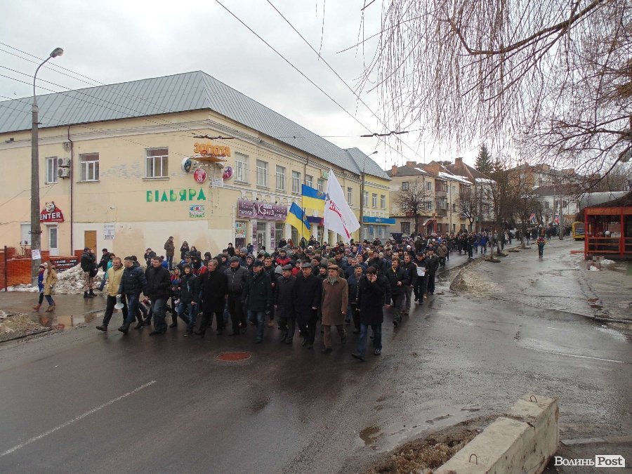 Після традиційного народного віче у центрі Луцька мітингувальники вирушили ходою до площі біля міського РАЦСу, що має неофіційну назву «Героїв Майдану».